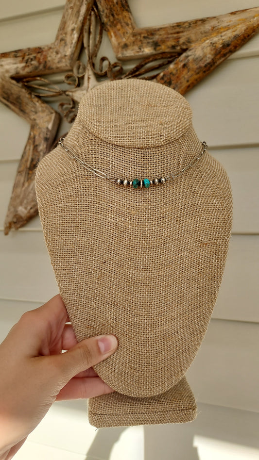 Sterling silver pearl and turquoise bar necklace